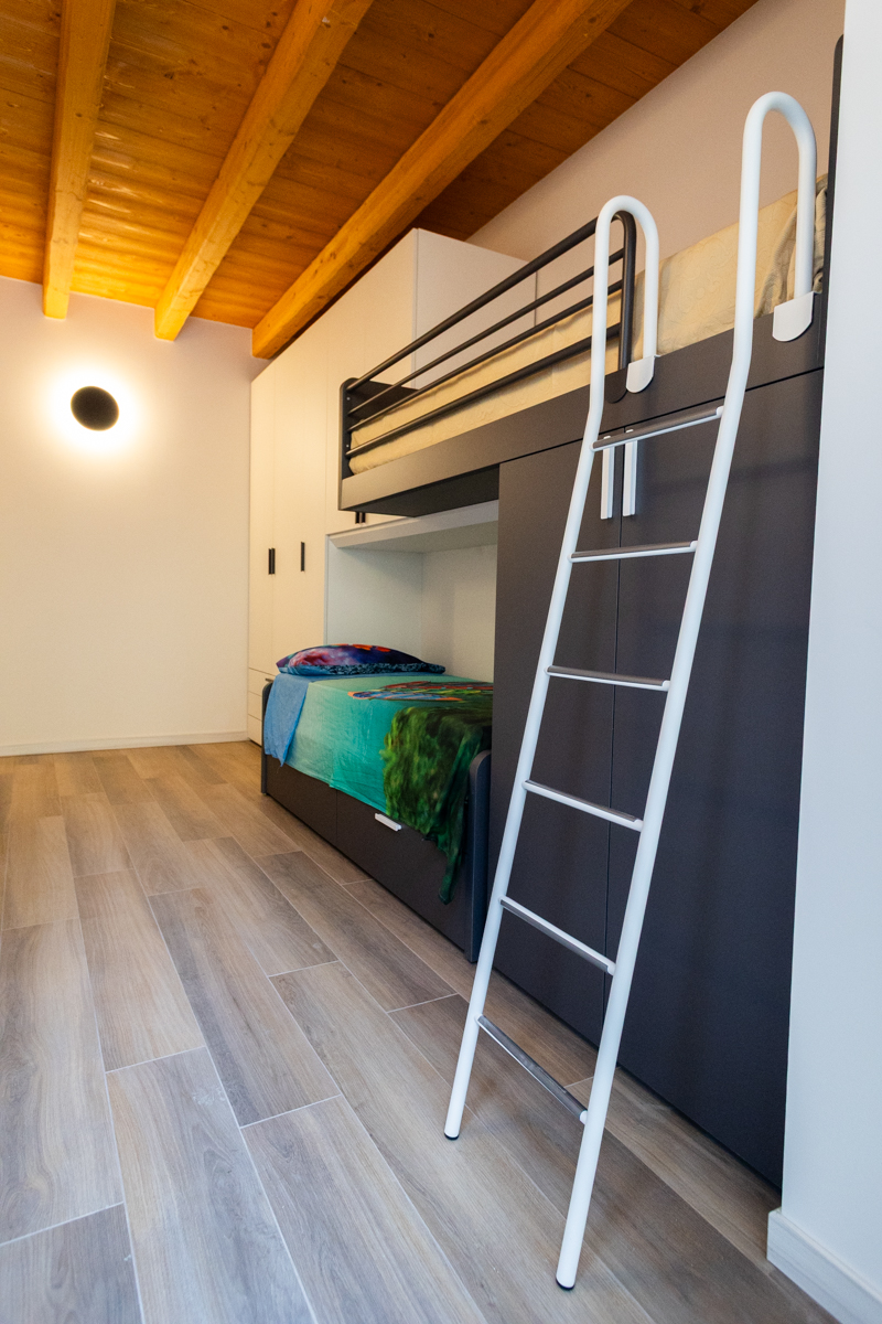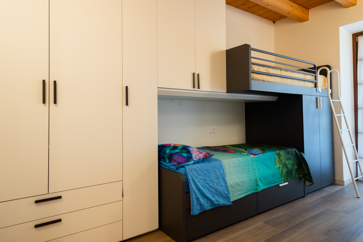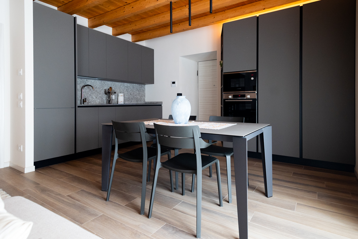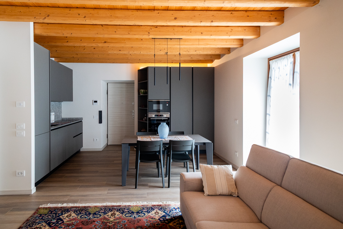 Situato al piano terra del corpo principale, questo appartamento offre accesso diretto al giardino privato, rendendolo ideale per le famiglie con bambini. Ampi spazi luminosi e una cucina completamente attrezzata garantiscono un soggiorno rilassante immerso nella natura.